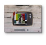 COLLAGE, STENCIL AND ACRYLIC ON INDUSTRIAL PALLET